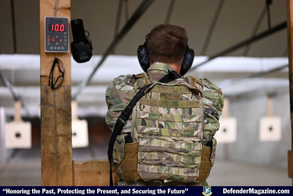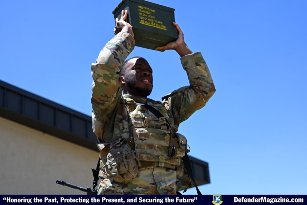 The momentum continued into Tuesday, where participants competed in the Security Forces Shooting Competition, a series of physical exercises, which included the competition for the highest qualification on both the M4 and M18 weapon systems at the Combat Arms Training and Maintenance building.