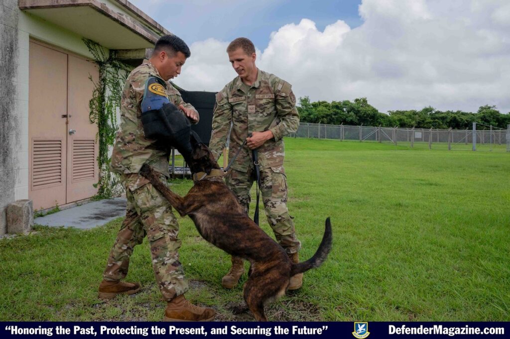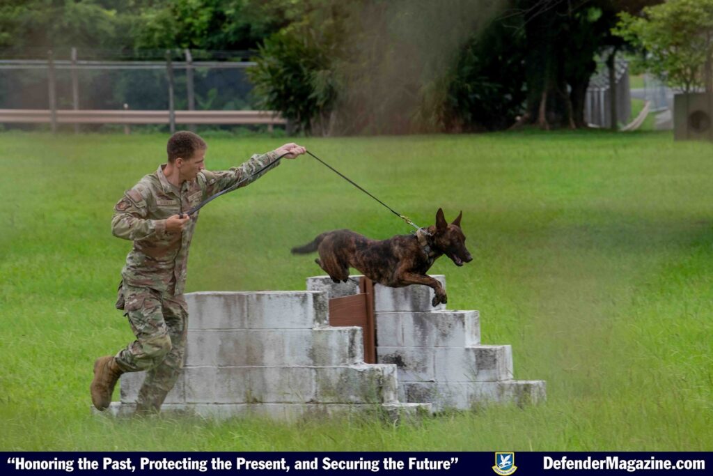 A key element of readiness is the squadron’s military working dog section. The highly-trained K-9 teams enhance base defense capabilities through explosive and narcotics detection, as well as tracking and intruder apprehension.