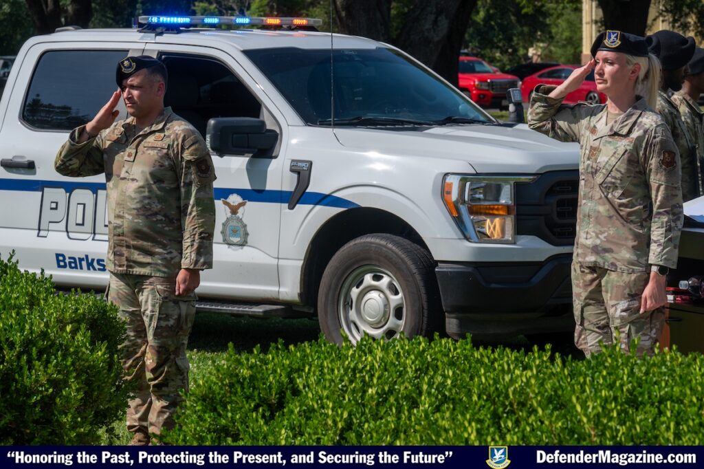 Police Week also serves as a solemn remembrance of fallen defenders who gave their lives in the line of duty. During Barksdale’s closing ceremony, defenders stood in silence, holding 14 framed photos of fallen defenders who paid the ultimate sacrifice.