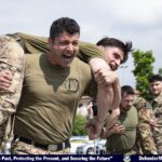 Members of the Italian air force perform a fireman carry at the Battle of the Badges event during Police Week at Aviano Air Base, Italy, May 15, 2025. Police Week is a time to recognize our Defenders, Special Agents, and Italian counterparts and honor those who lost their lives in the performance of their duties. (U.S. Air Force photo by Staff Sgt. Brooke Rogers)