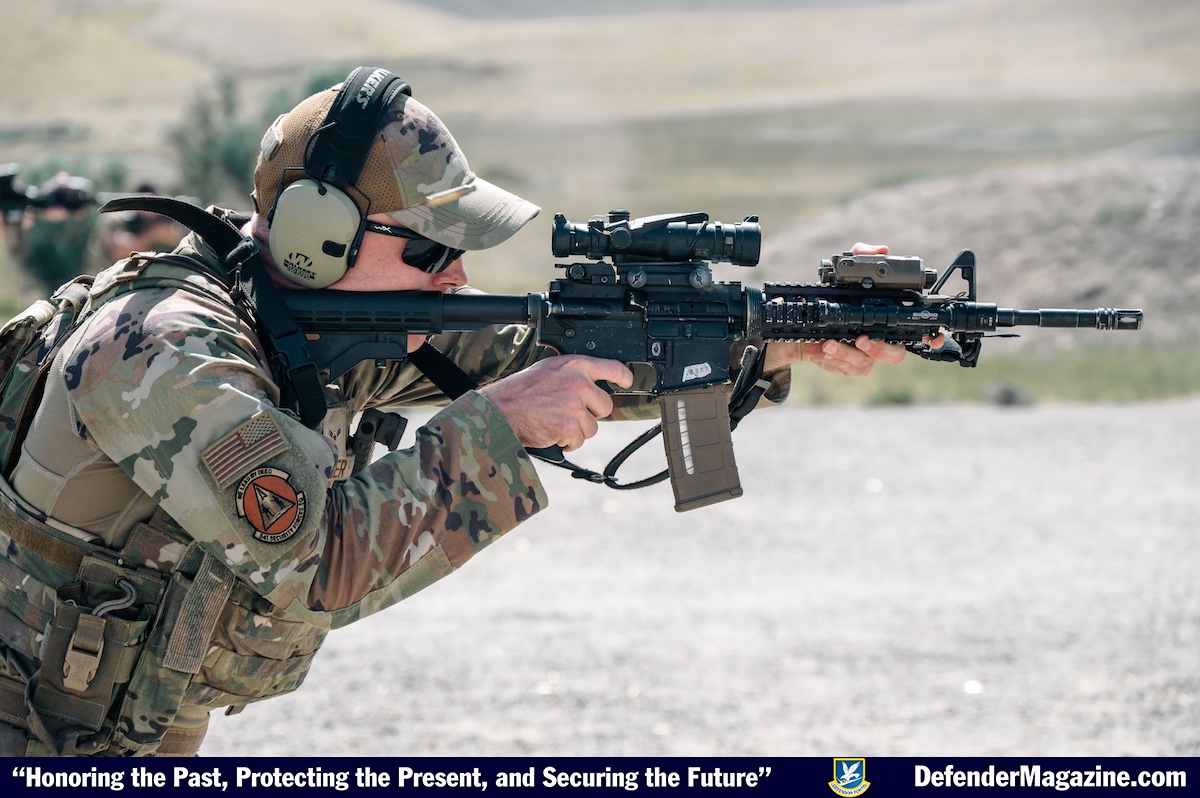 An Airman assigned to the 341st Security Forces Squadron shoots a target Aug. 15, 2025, at Fort William Henry Harrison, Mont. Regular practice with their weapons ensures that Malmstrom’s Defenders remain accurate and confident with their weapons. (U.S. Air Force photo by Airman 1st Class Jack Rodriguez Escamilla)