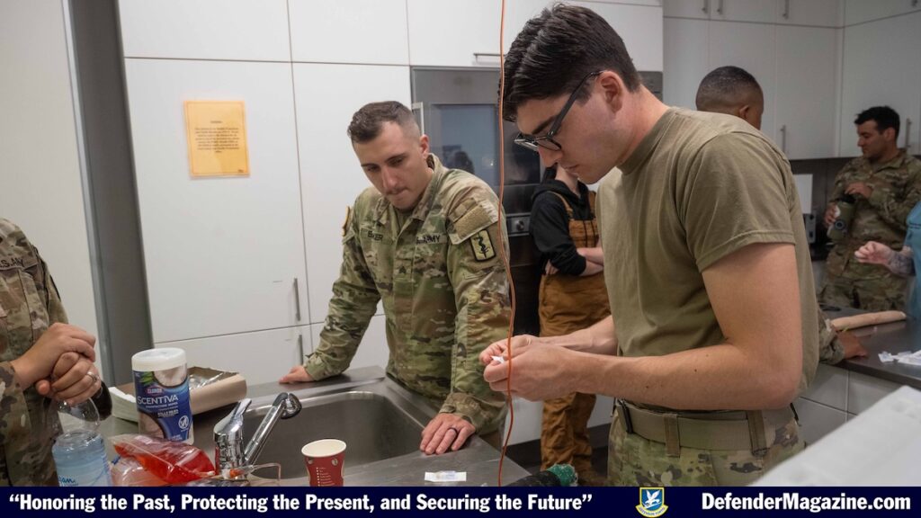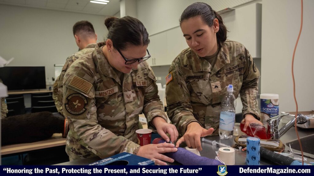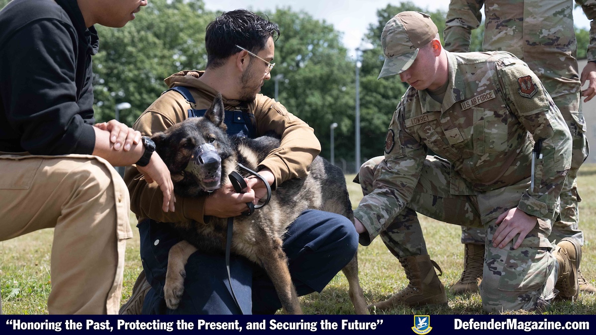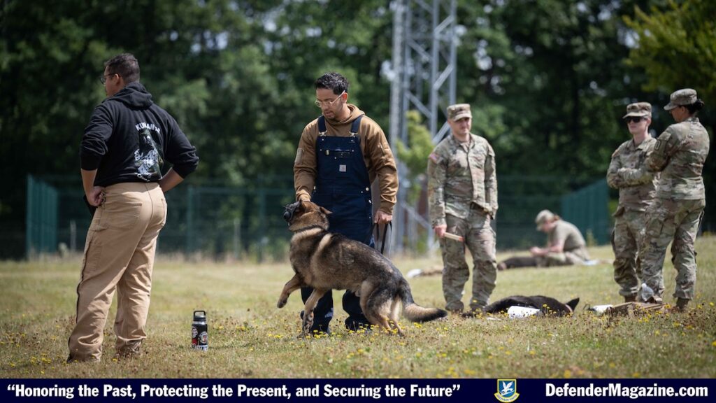 SPANGDAHLEM AIR BASE, Germany — Airmen from the 52nd Medical Group teamed up with U.S. Army instructors to learn life-saving care for military working dogs during canine Tactical Combat Casualty Care training at Spangdahlem Air Base, Germany, July 16, 2025. U.S Army instructors led the training, ensuring both services are prepared to care for K-9 partners in combat environments. (U.S. Air Force photos by Senior Airman Darius Frazier)