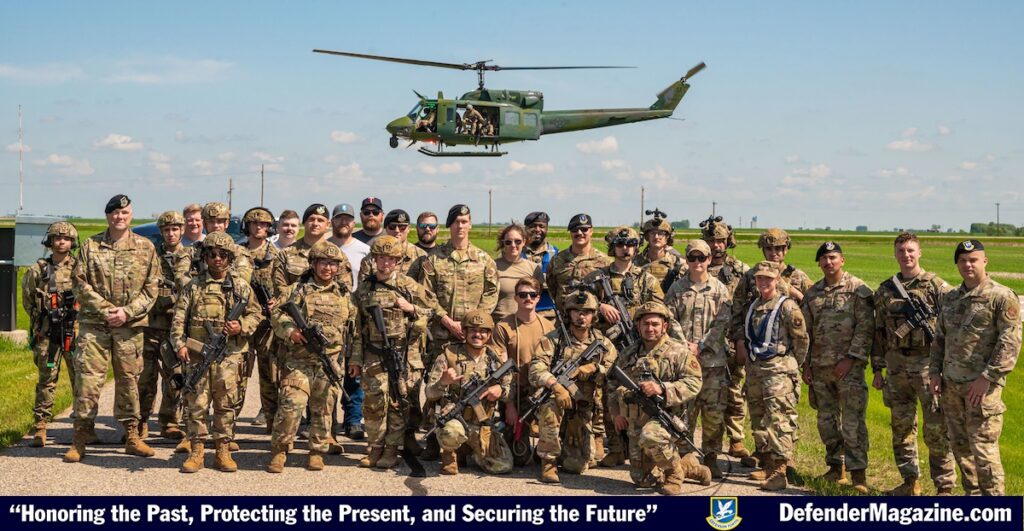 91st Security Forces Group and the 54th Helicopter Squadron pose for a group photo at a missile alert facility outside of Minot Air Force Base, North Dakota, June 17, 2025. 91SFG, 54HS took part in a mass casualty exercise alongside local police and paramedics.