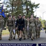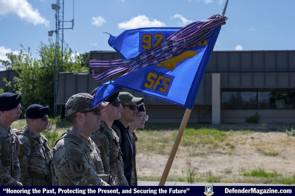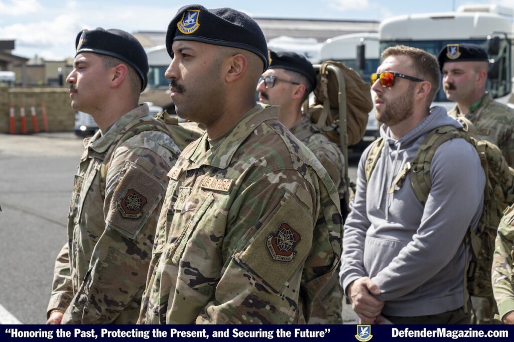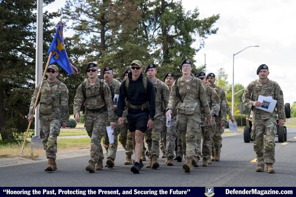 FAIRCHILD AIR FORCE BASE, Washington — Members assigned to the 92nd Air Refueling Wing stand in formation during a Police Week Memorial Ruck at Fairchild Air Force Base, Washington, May 12, 2025. This four-mile memorial ruck honored all the fallen defenders, law enforcement officers, and Office of Special Investigations officers. (U.S. Air Force photo by Airman 1st Class Samantha Thorn).