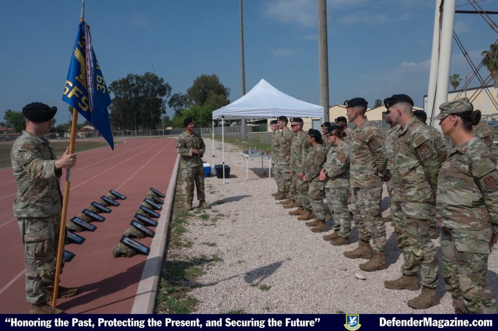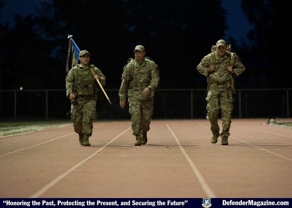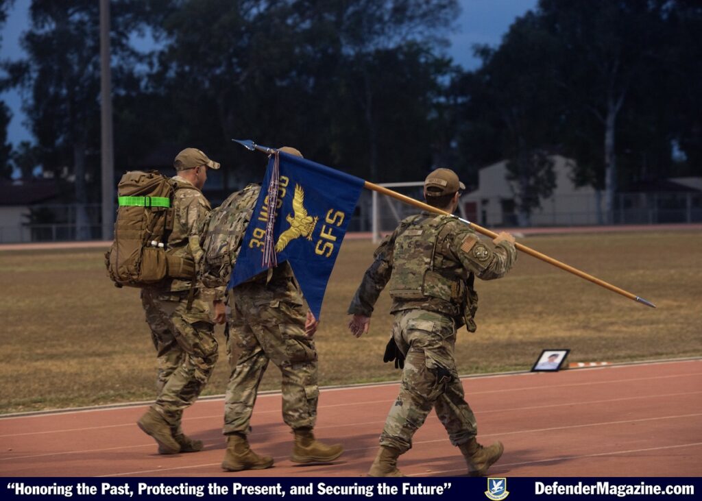 INCIRLIK AIR BASE, Turkey — Airmen assigned to the 39th Security Forces Squadron carry the unit’s guidon during a National Police Week 24-hour ruck march at Incirlik Air Base, Türkiye, May 15, 2025. The 39th SFS organized a 24-hour ruck march during National Police Week, commemorating the sacrifices of law enforcement officers. (U.S. Air Force photo by Tech. Sgt. Franklin R. Ramos)