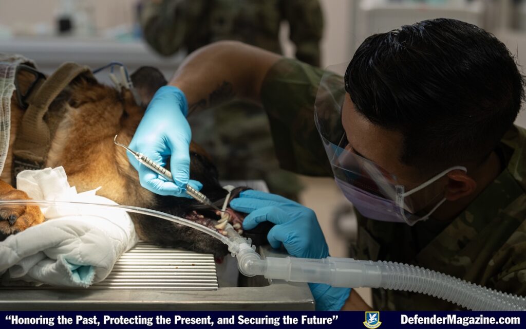 Staying mission ready for 6th SFS MWD Wwilly on this particular morning means going to the veterinarian for her annual dental checkups, also known as a comprehensive oral health assessment and treatment (COHAT).
